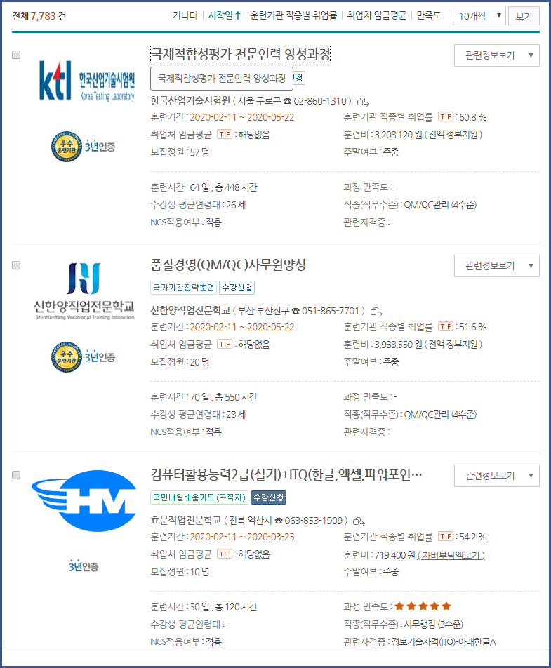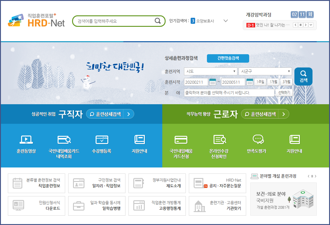 직업훈련포탈(HRD-NET)에 개설되어 있는