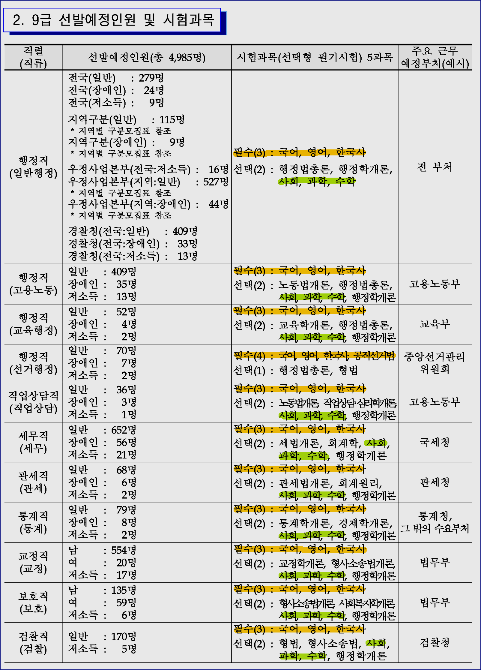 먼저 9급공무원 시험과목을 보도록 하겠습니다.