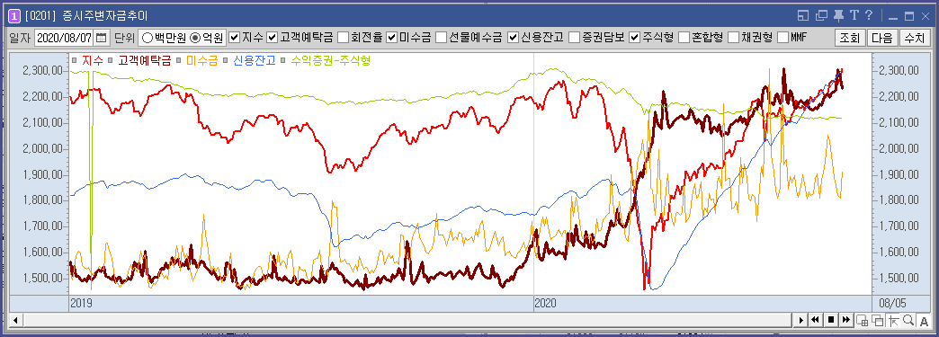 위 차트에서 갈색의 두꺼운 선이 고객예탁금 추이입니다.