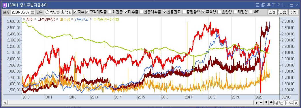 그만큼 주식을 사기 위한 자금이 많이 대기하고 있다는