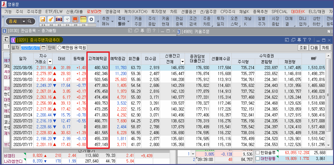 그러면 아래 사진과 같이 0201 증시주변자금추이가