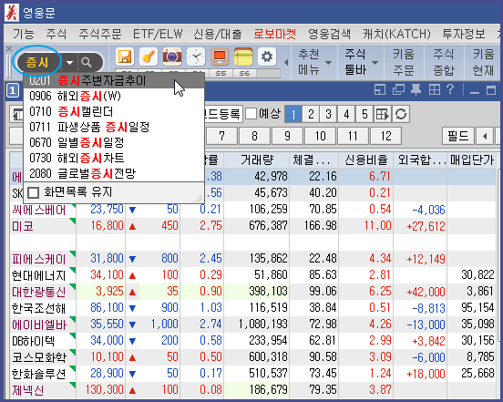 오늘 포스팅은 키움증권 영웅문 HTS를 이용하여