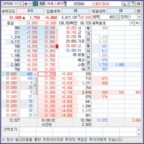그 중 x-ray 호가창에는 호가외에도 세력강도,