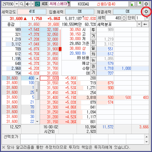 그러면 이 세력 주문수량을 자동으로 설정하는 방법도