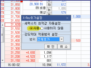 이상 키움증권 영웅문4의 x-ray 호가창을