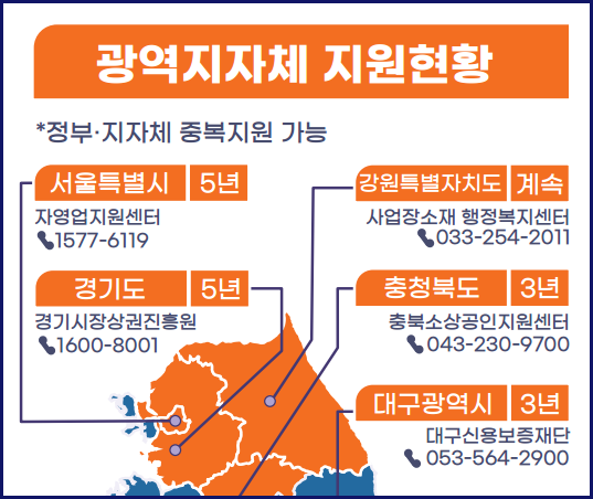충청북도, 대구광역시, 울산광역시, 대전광역시는 3년간 지원해줍니다.