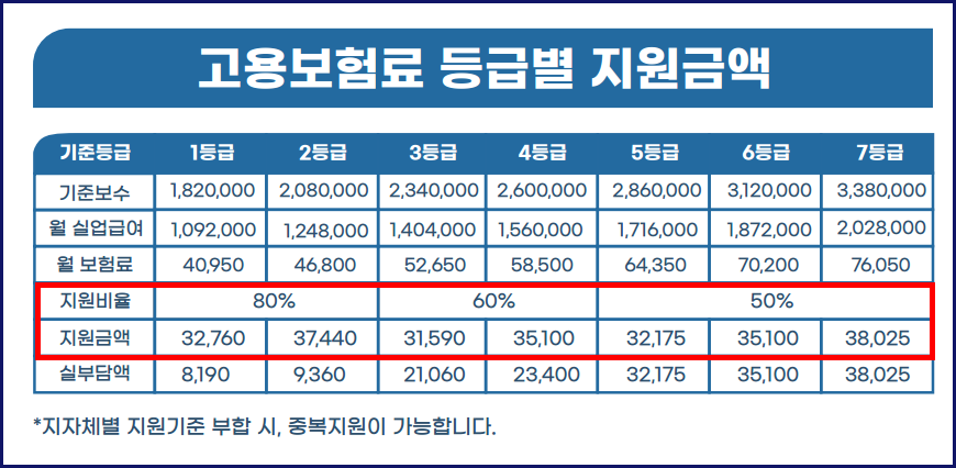 고용보험료 지원은 납부한 고용보험료의 최대 80%까지 지원을 받습니다.