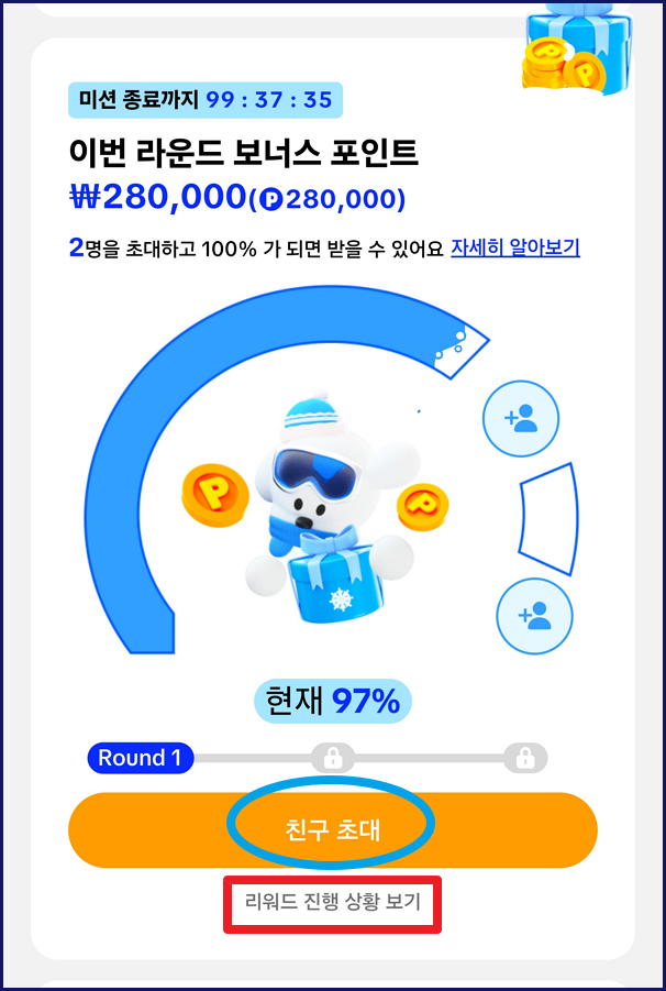 위 화면 "리워드 진행 상황 보기"에서 확인할 수 있습니다.
