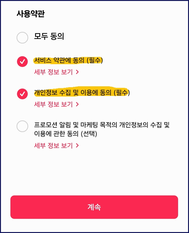 아래와 같이 동의 창이 나오면 동의에 체크하고