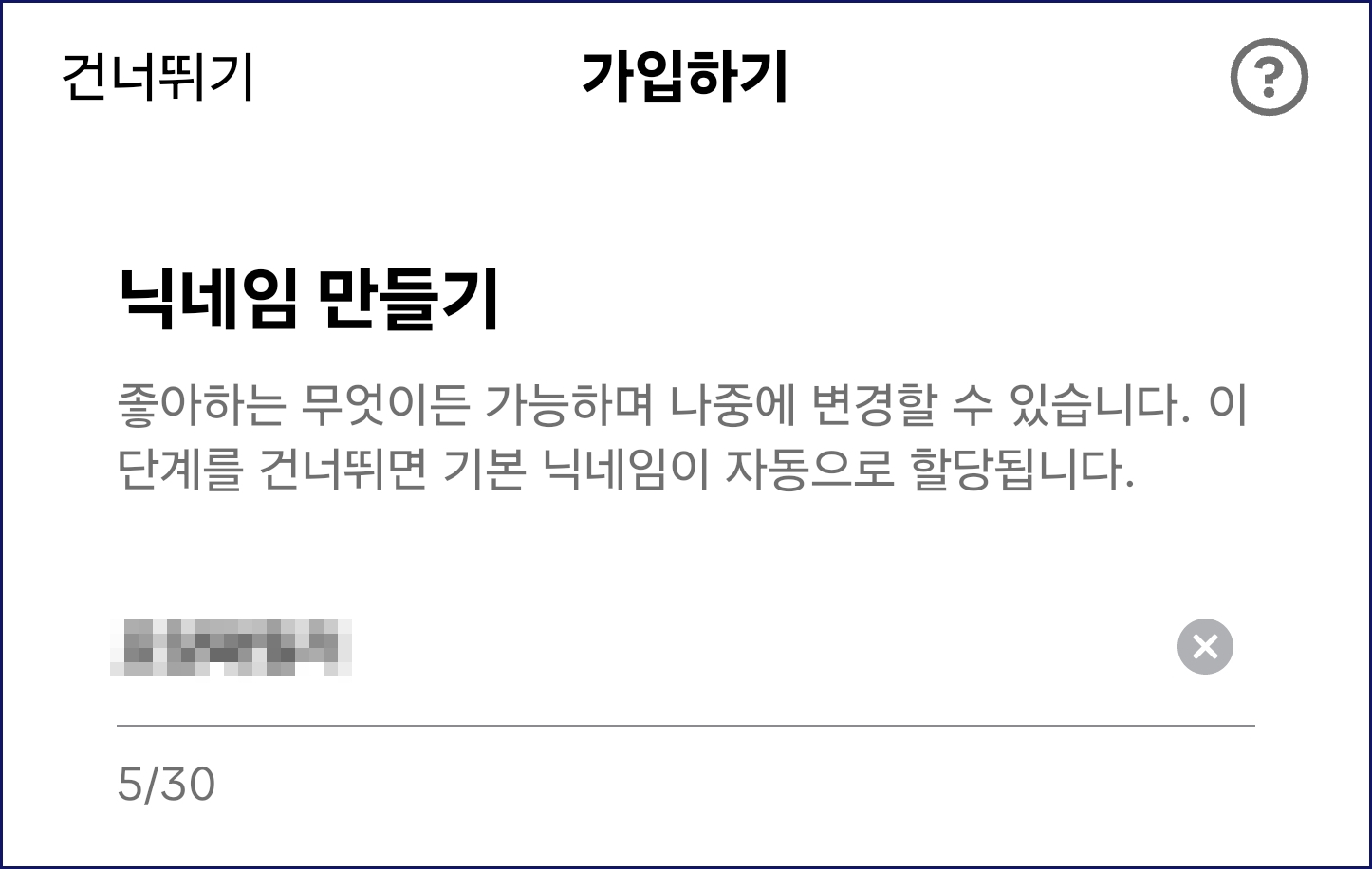 닉네임을 적어줘도 되고 귀찮으면 건너뛰기를 눌러도 됩니다.