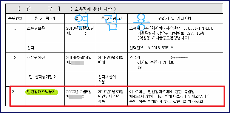 민간임대주택으로 등기된 내용이 말소되었는지를 확인하기 위해서였는데