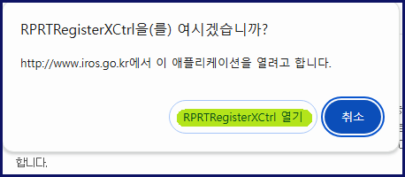 그러면 홈페이지 접속후 설치한 뷰 프로그램(RPRRegisterXCtrl)이 실행이됩니다.