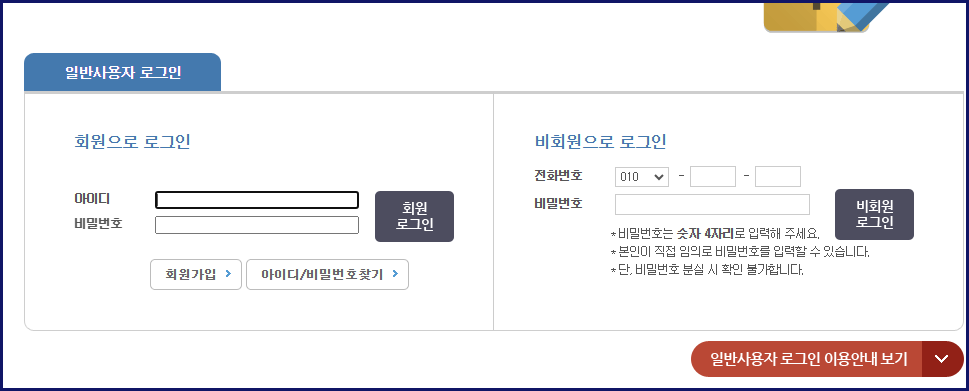 우측에 비회원으로 로그인이 있는데 비회원로그인으로는