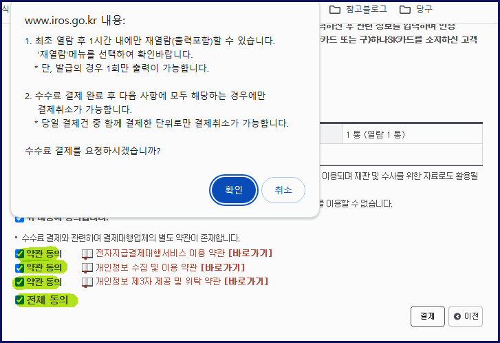저는 출력까지 필요없어서 열람하기를 눌렀어요!