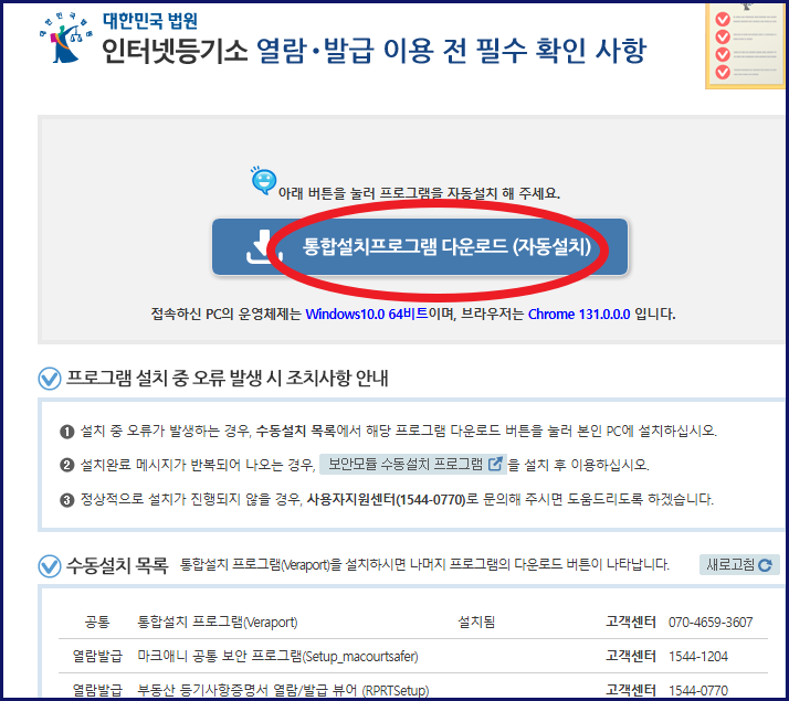 통합설치프로그램 다운로드를 눌러서 설치를 합니다.