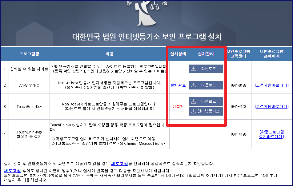 홈으로 이동하면 아래와 같이 또 보안프로그램 설치 안내가 나옵니다.
